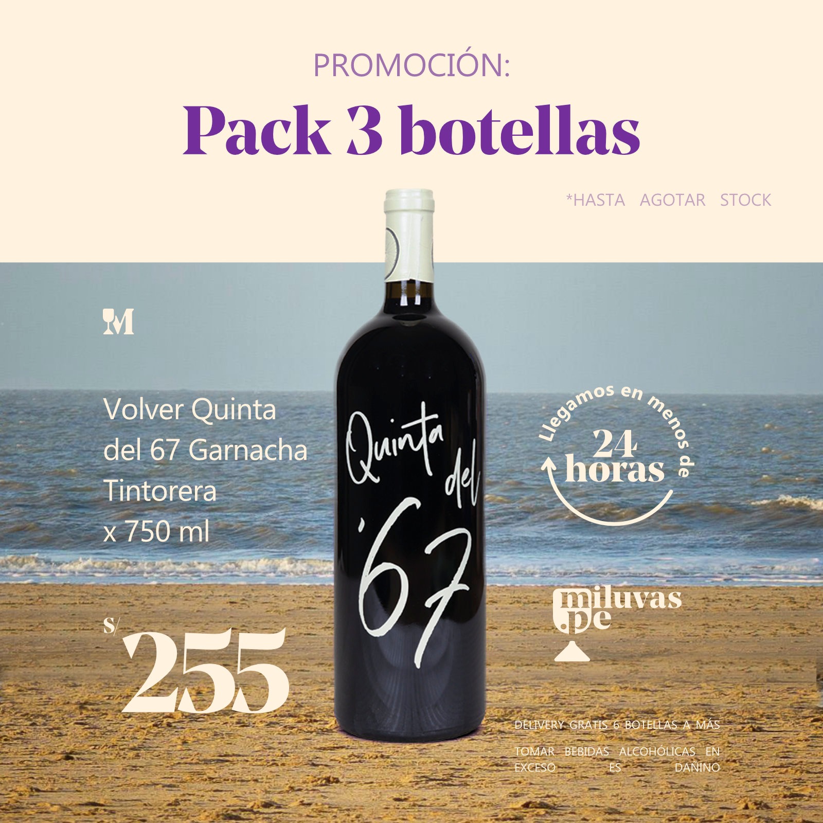 03 Bots. Vino Volver Quinta del 67 Garnacha Tintorera x 750 ml. - Miluvas www.miluvas.pe
