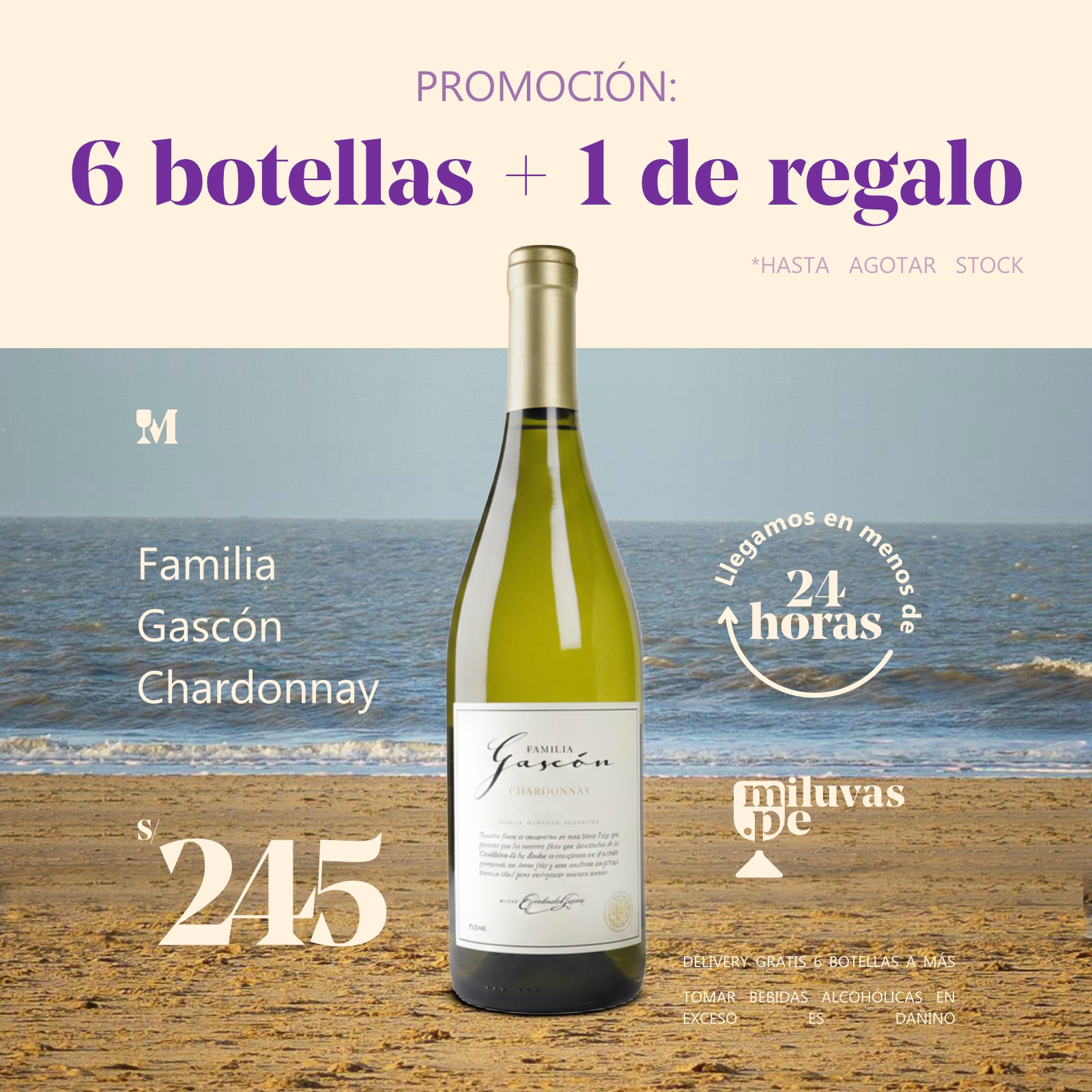 06 Bots. + 1 Bot. Vino Familia Gascón Chardonnay Mendoza - Miluvas www.miluvas.pe