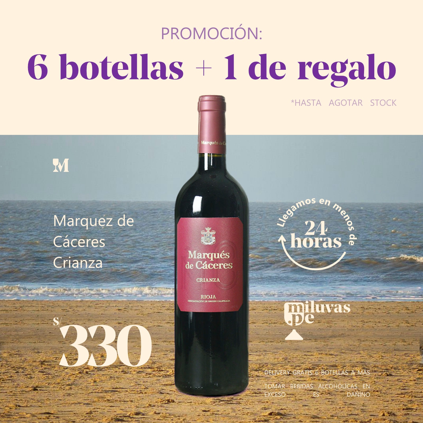 06 Bots. + 1 Bot. Vino Marqués de Cáceres Crianza - Miluvas www.miluvas.pe