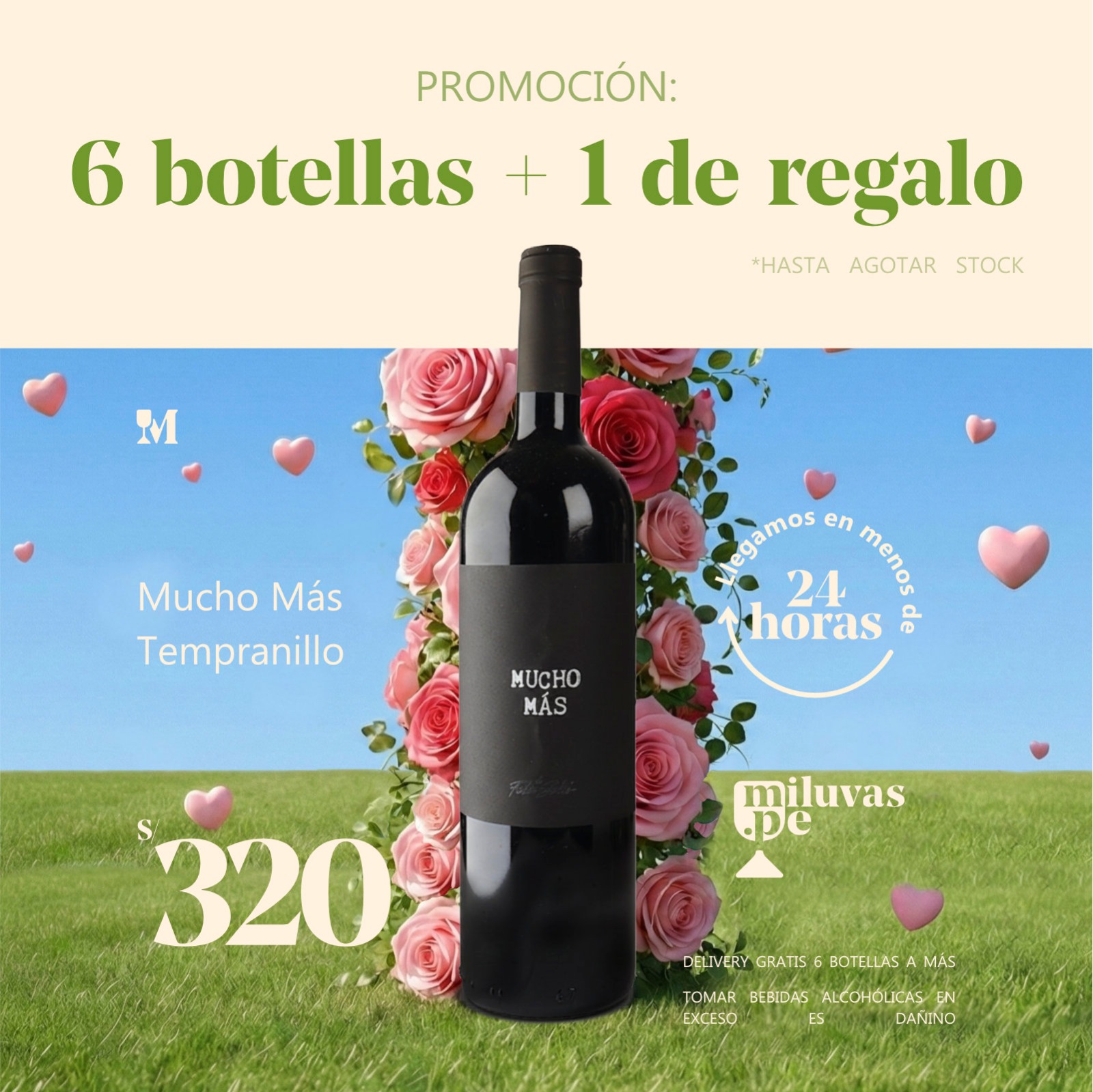 PACK 06 Bots. + 1 Bot. Vino Mucho Más Tempranillo Felix Solis x 750 ml.