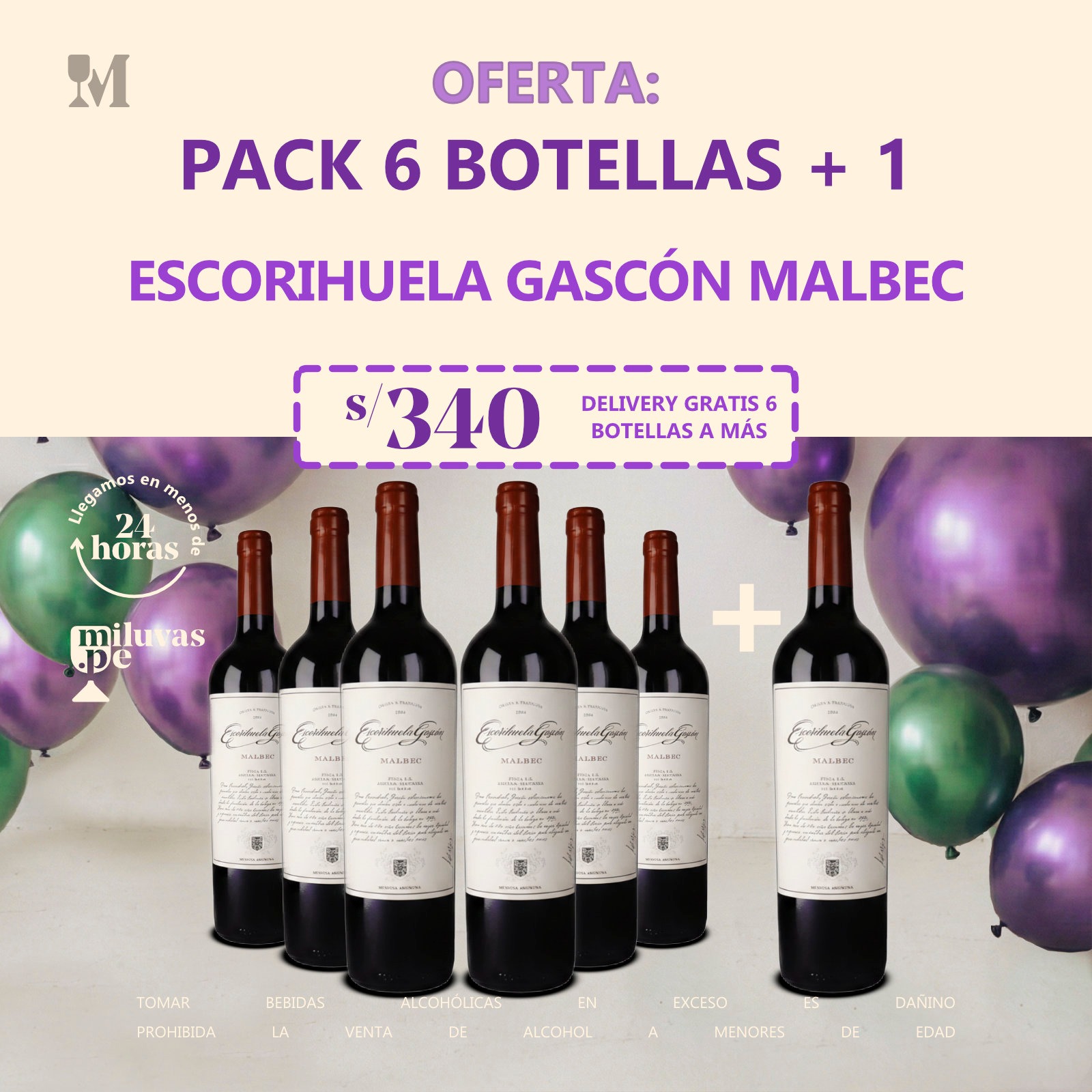PACK 06 Bots. + 1 Bot. Vino Escorihuela Gascón Malbec x 750 ml. Mendoza