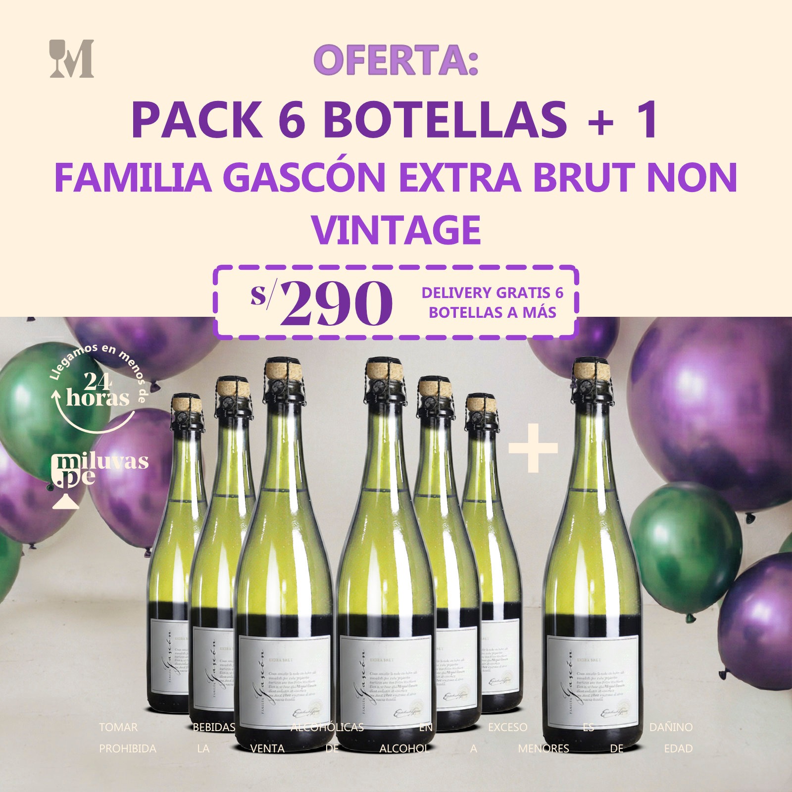 PACK 06 Bots. + 1 Bot. Vino Familia Gascón Extra Brut Non Vintage x 750 ml. - Miluvas www.miluvas.pe