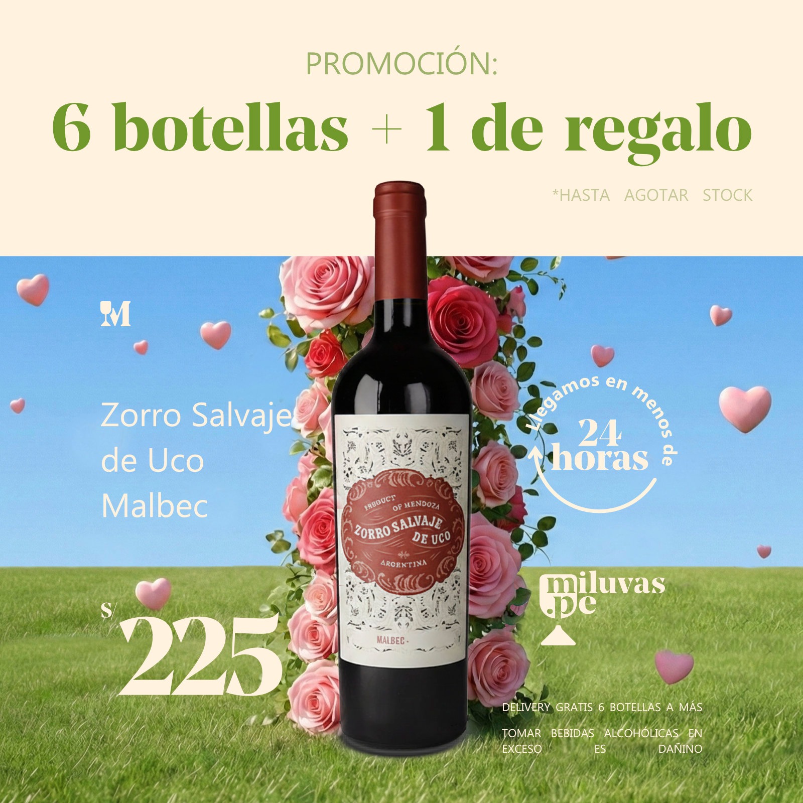 PACK 06 Bots. + 1 Bot. Vino Zorro Salvaje de Uco Malbec x 750 ml. Mendoza OFERTA! - Miluvas www.miluvas.pe