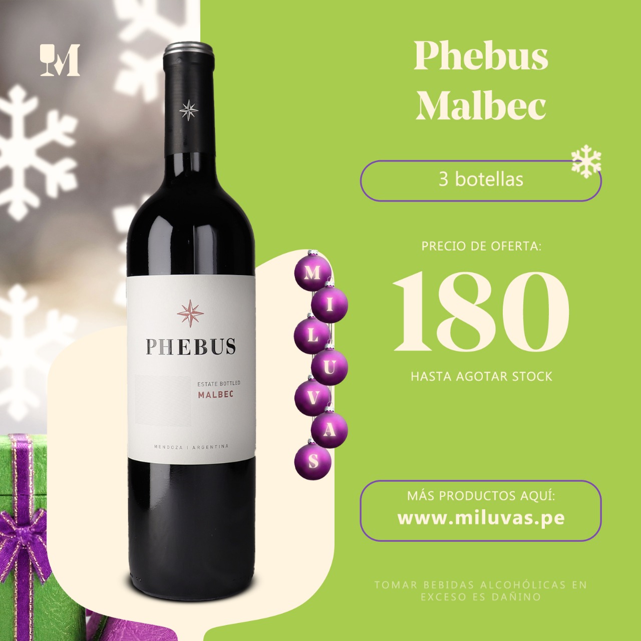 03 Bots. Vino Phebus Malbec Mendoza - Miluvas www.miluvas.pe